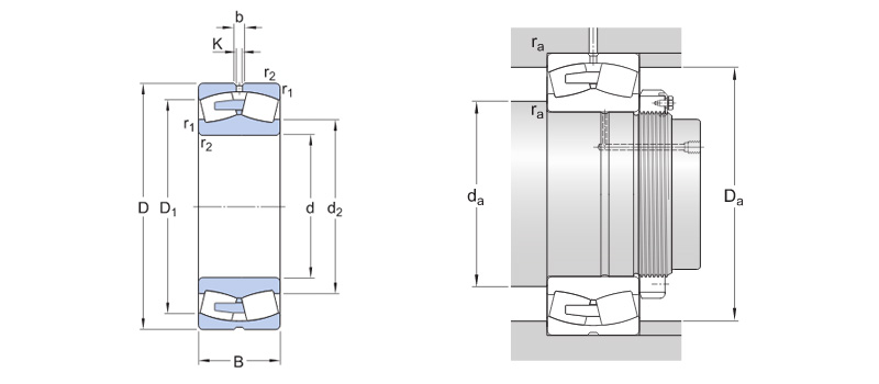 Self-aligning roller bearings feature two rows of rollers, primarily designed to bear radial loads while also accommodating axial loads in either direction. They possess high radial load capacity, making them particularly suitable for heavy or vibrating loads, though they cannot bear pure axial loads. The outer ring raceway is spherical, conferring excellent self-aligning capability to compensate for misalignment errors. Featuring two symmetrical rows of spherical rollers, the outer ring possesses a common spherical raceway, while the inner ring has two raceways inclined at an angle to the bearing axis, providing excellent self-aligning capability. This bearing type offers substantial load capacity, accommodating not only radial loads but also bidirectional axial loads. It exhibits good shock resistance and is designed for high radial loads, even in environments involving eccentricity, inadequate lubrication, contaminants, extremely high speeds, or severe stress. It is particularly suitable for heavy loads or vibrating conditions.