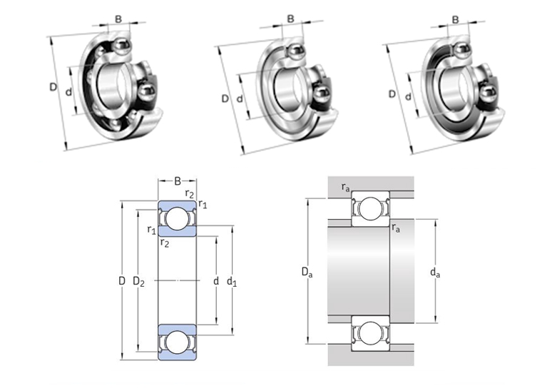 Deep groove ball bearings represent a common type of rolling bearing, available in sealed and open configurations. The open type denotes bearings without sealing structures, while sealed deep groove ball bearings feature either dust seals or oil seals. Primarily designed to handle radial loads, they can also accommodate a certain degree of axial load. When subjected solely to radial loads, the contact angle is zero. When deep groove ball bearings possess substantial radial clearance, they exhibit characteristics akin to angular contact bearings, enabling them to withstand greater axial loads. They feature a very low coefficient of friction and can operate at extremely high rotational speeds.